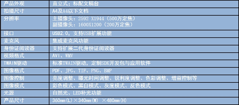 高拍(pāi)儀是一款創新性的多功能文檔拍(pāi)攝儀。它能一秒鍾完成高清掃描, 且具有超強的OCR文字識别功能,可(kě)将掃描的文檔識别存儲爲Word、Excel等可(kě)編輯文檔, 準确率達98%以上, 也可(kě)存儲爲PDF、JPG、TIF、PNG、BMP等多種文件(jiàn)格式。同時具有實物投影(yǐng)、實物拍(pāi)攝、視頻錄像、網絡傳真、快(kuài)速打印、書籍翻拍(pāi)等多功能,廣泛應用于政府部門、醫學機構、 航天航空,金融行業(銀行、證券、保險),電信行業、教育機構等有文件(jiàn)需掃描歸檔或複印存檔的領域。