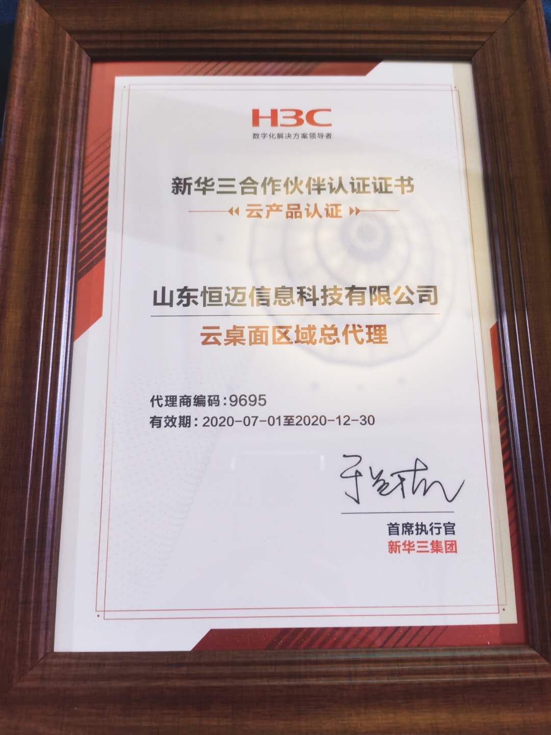 此次我公司榮獲"雲桌面區域總代理(lǐ)"認證,是新華三對我公司技術實力及服務水平的充分(fēn)肯定,是對我公司全體員工(gōng)奮力拼搏的最佳褒獎。希望同事(shì)們也繼續努力,再接再厲争取更大(dà)的成績。