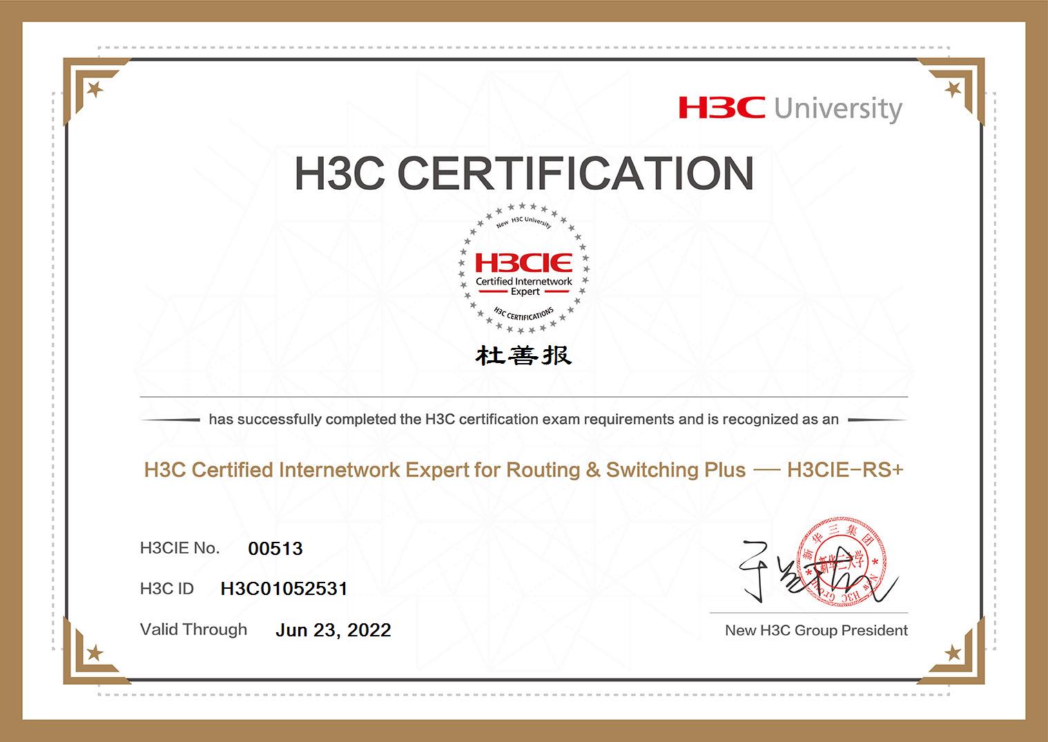 熱烈祝賀我公司IT精英榮獲“H3C認證路(lù)由交換互聯網絡專家”認證證書