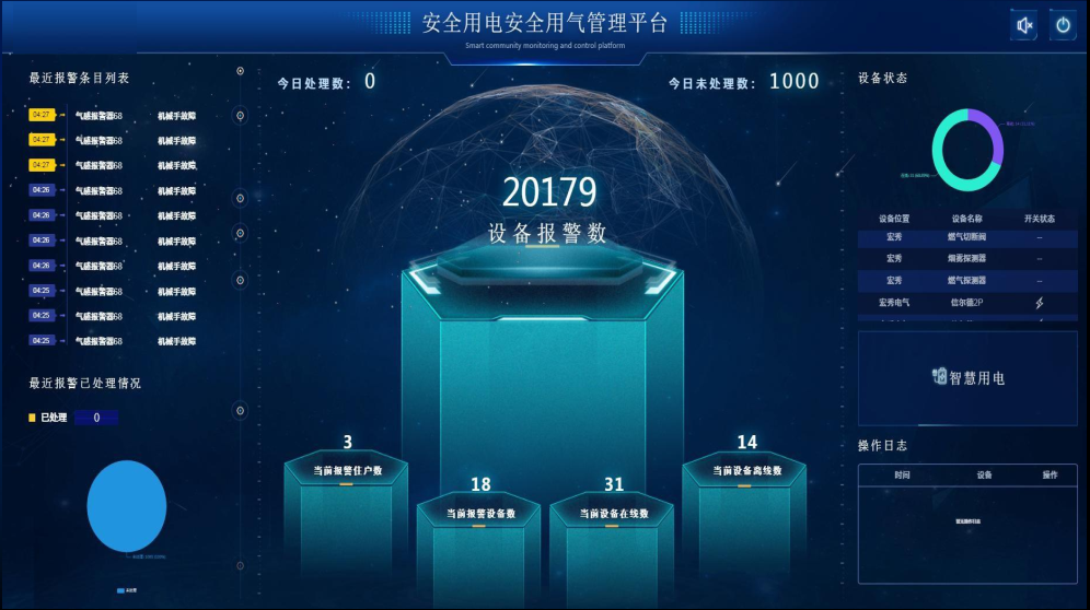 數據平台通過前端物聯網智能斷路(lù)器、傳感器反饋的精準數據對比及深度分(fēn)析, 建立起有效的預警、預防、 保護、 控制管理(lǐ)機制, 分(fēn)級、 分(fēn)權限精準管控,将電氣、 燃氣 隐患扼殺于未然; 同時提供故障原因分(fēn)析報告,供管理(lǐ)層決策、優 化 管 理(lǐ) 流 程 及 制 定 維 護、維修計劃。 從用電、 用氣側實現無人(rén)值守或少人(rén)值守,全面保障用氣、用電安全。