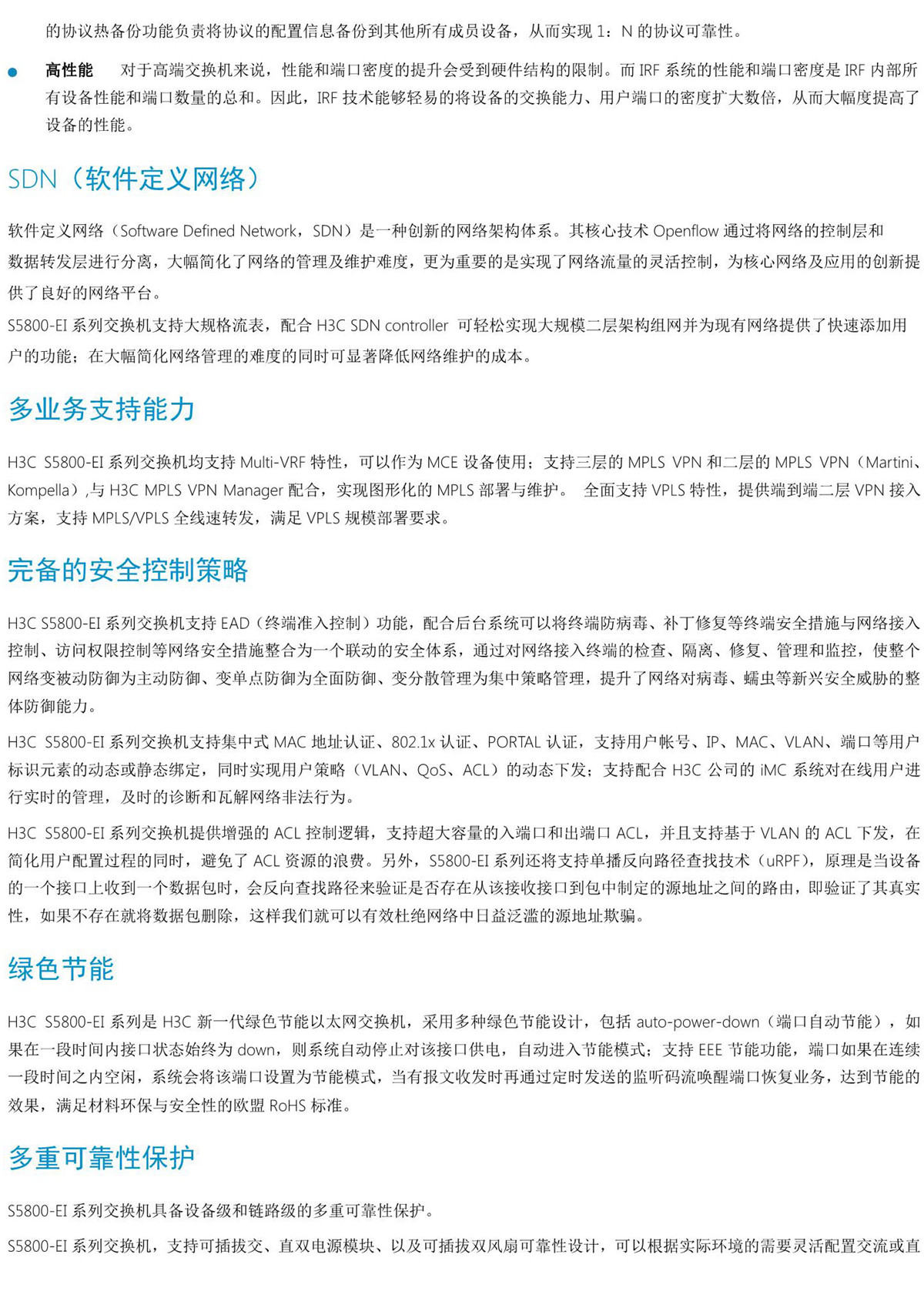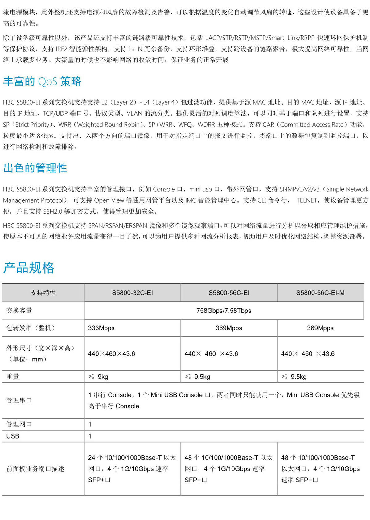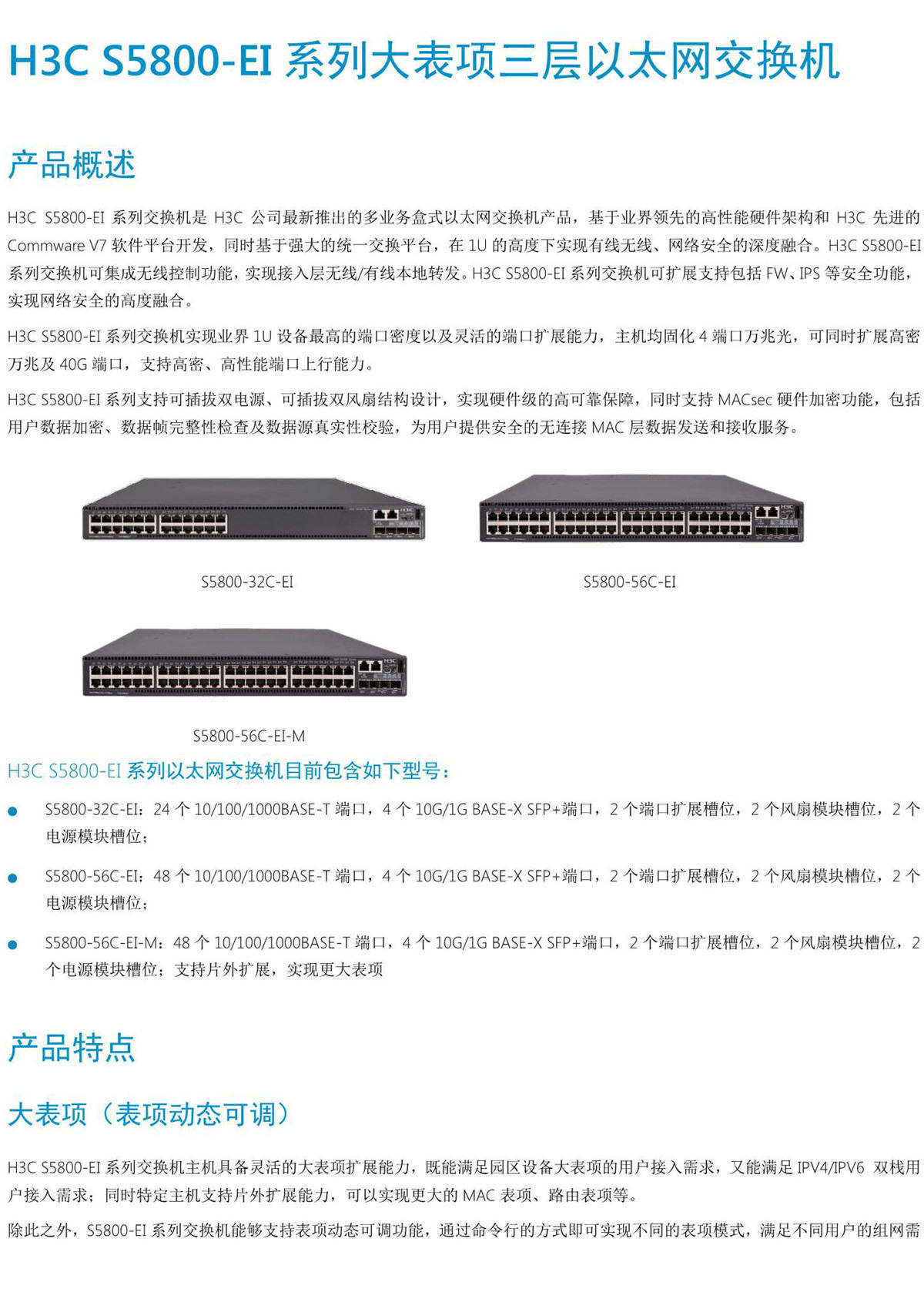 H3C S5800-EI系列交換機是H3C公司最新推出的多業務盒式以太網交換機産品,基于業界領先的高性能硬件(jiàn)架構和H3C先進的Commware V7軟件(jiàn)平台開發,同時基于強大(dà)的統一交換平台,在1U的高度下實現有線無線、網絡安全的深度融合。H3C S5800-EI系列交換機可(kě)集成無線控制功能,實現接入層無線/有線本地轉發。H3C S5800-EI系列交換機可(kě)擴展支持包括FW、IPS等安全功能,實現網絡安全的高度融合。